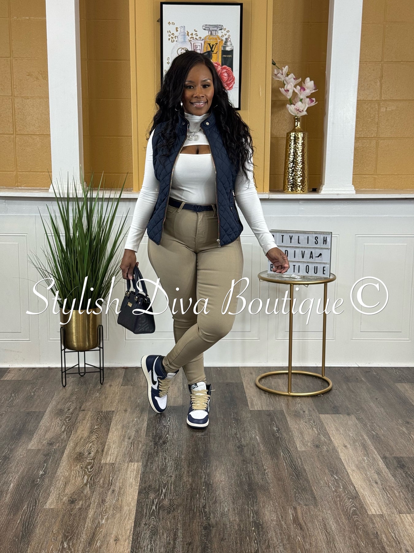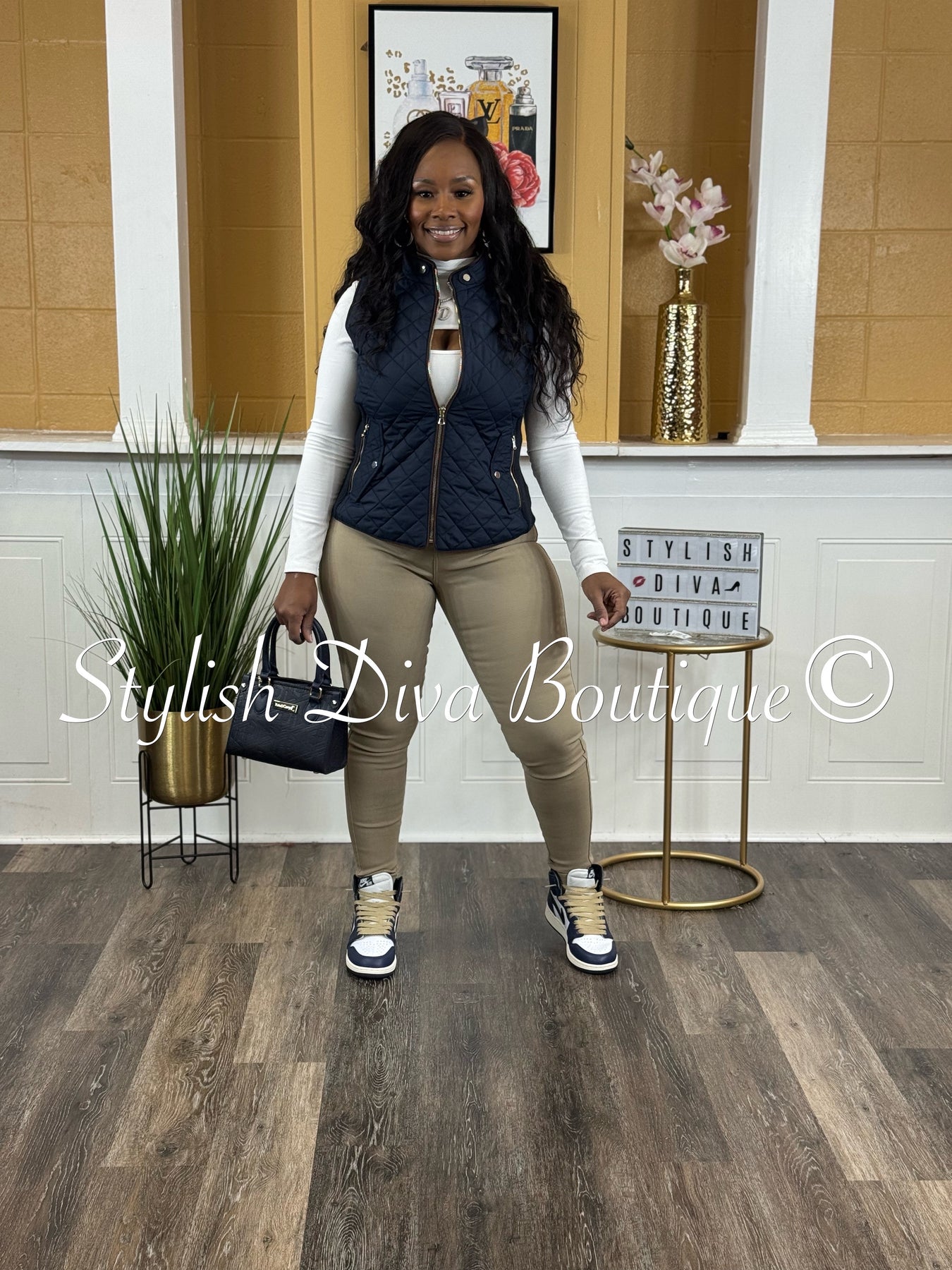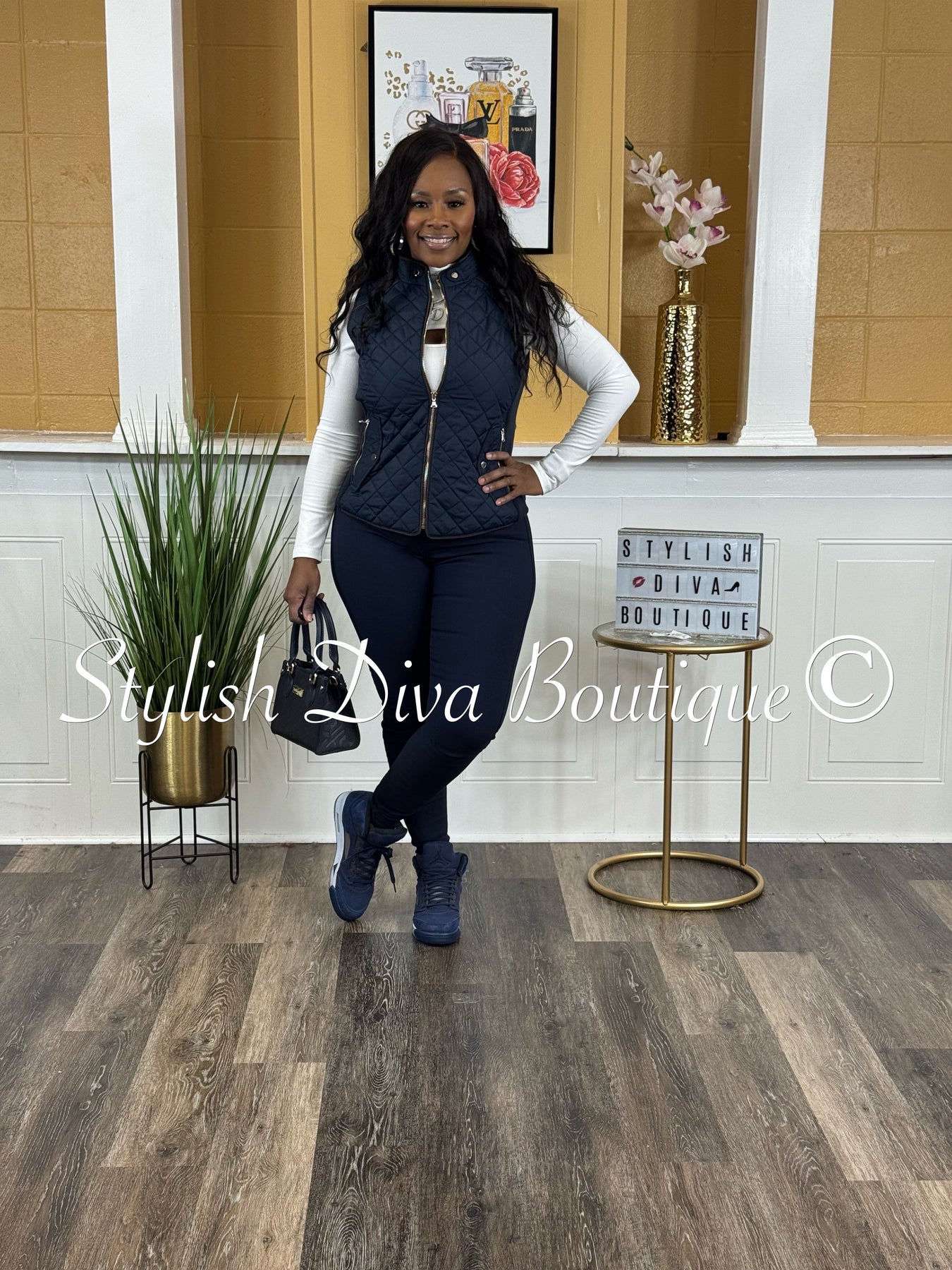 Take your wardrobe to new heights with our stylish Suede Piping Quilted Padding Vest. Look your best while enjoying luxurious navy fabric and sleek suede piping accents. Fashionable and functional, this top-selling vest is a must-have for cooler weather. Its slim fit is perfect for any occasion, offering chest, shoulder and length measurements for a comfortable fit. Pair it with a long sleeve round neck tee and reap the rewards of pockets and a convenient zipper closure. Look amazing today with our stylish Suede Piping Quilted Padding Vest!
