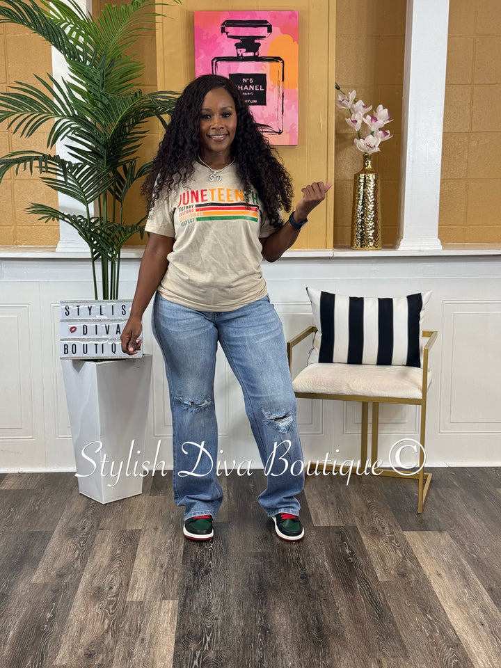 Introducing our Linden Wide Leg Distressed Jeans! These high-waisted, wide leg jeans are designed to fit true to size and provide a flattering, elongated silhouette. The stretch fabric and finished hem add comfort and style, while the distressed knees give a trendy, edgy touch. Perfect for any fashion-forward look!