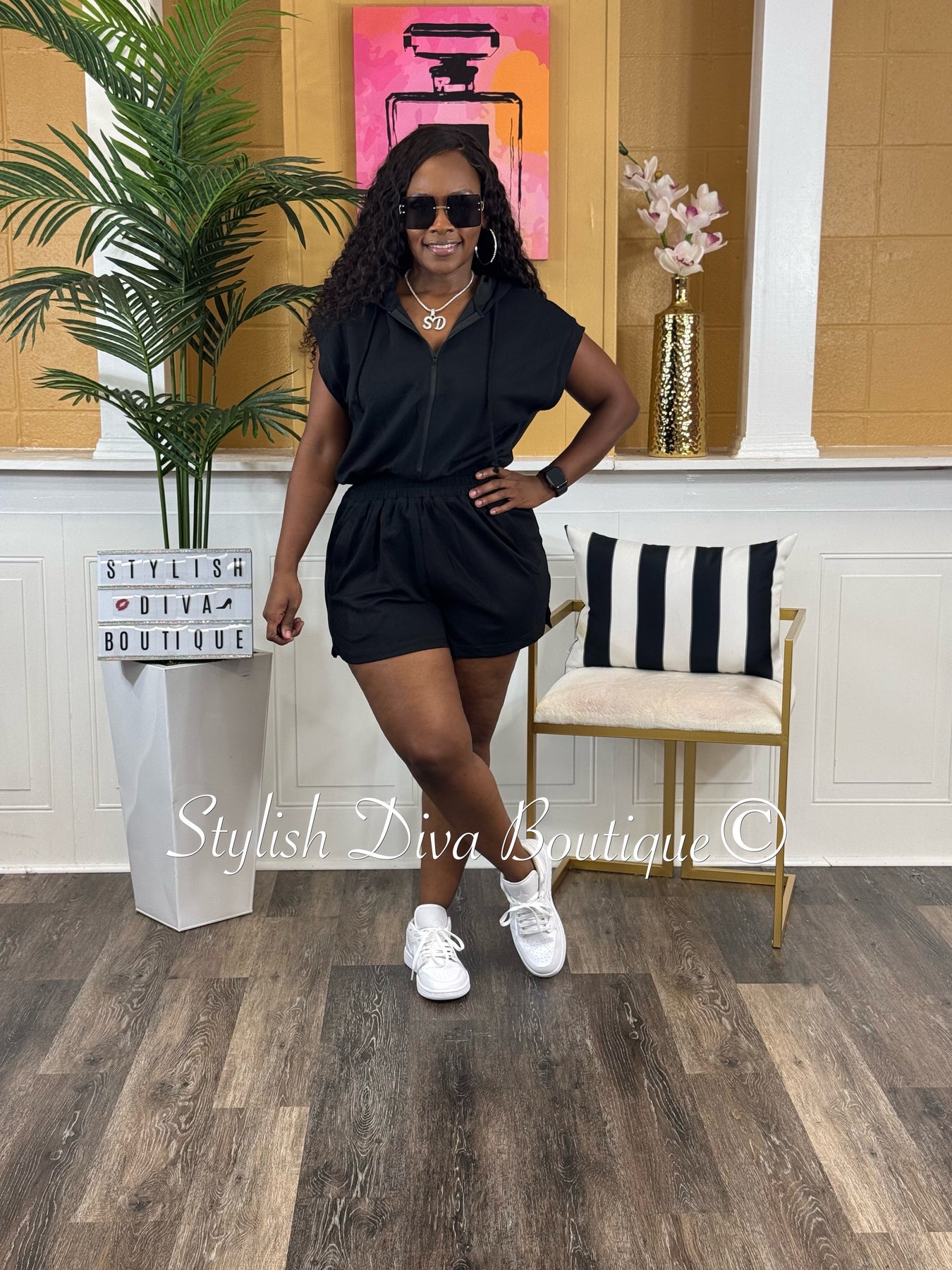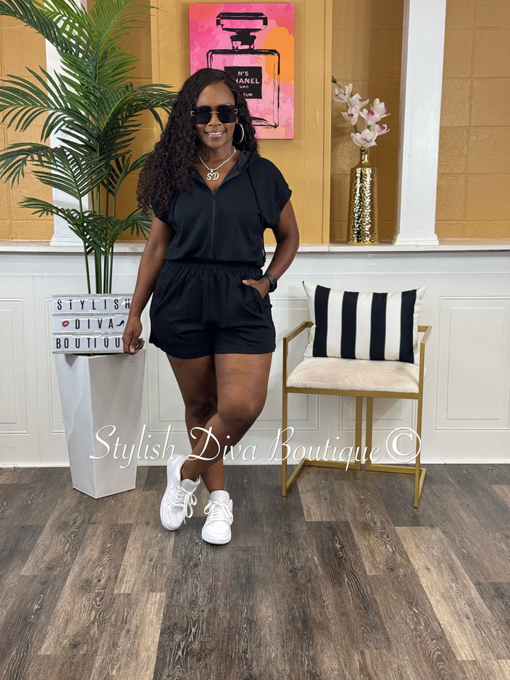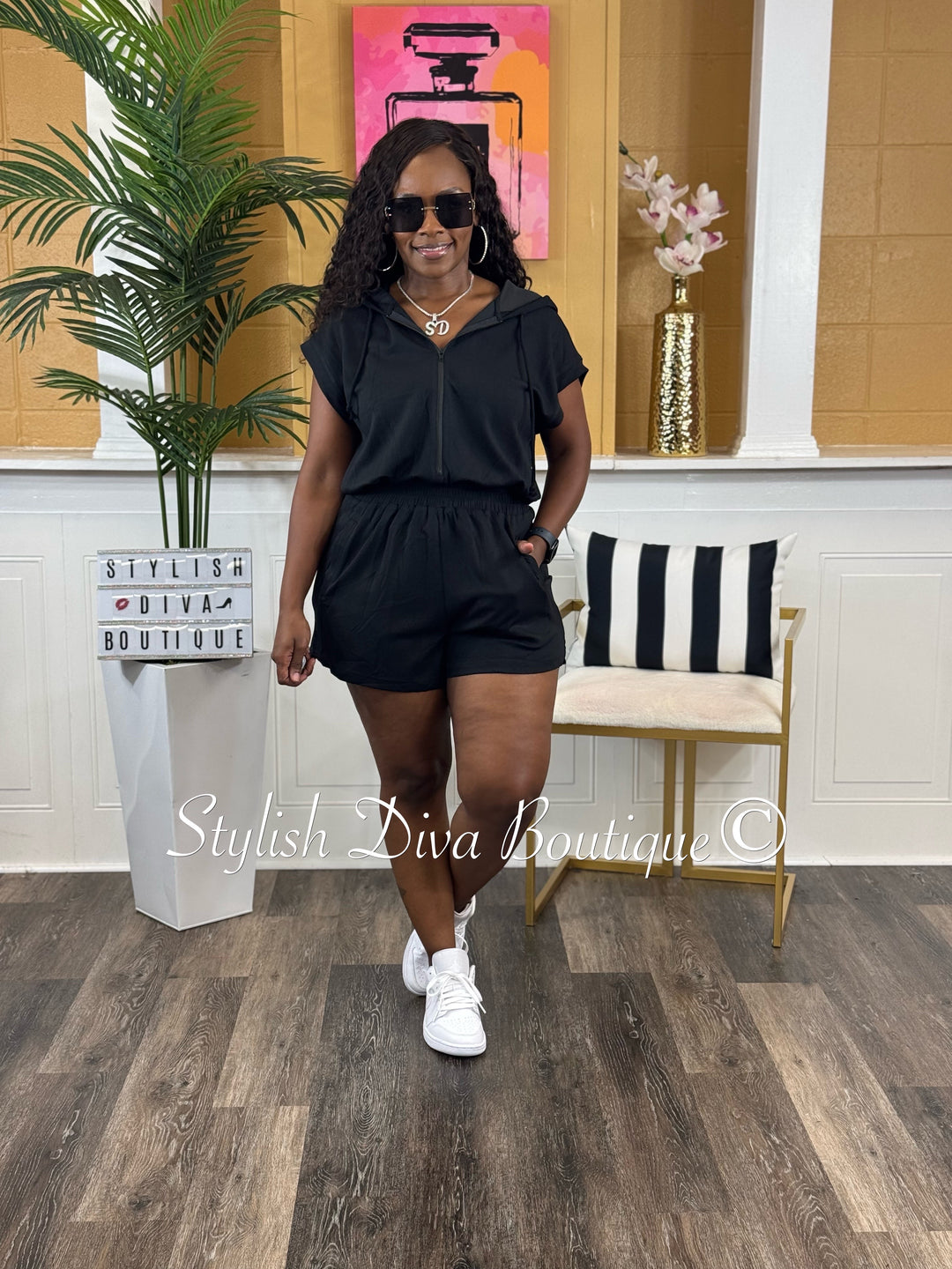Look effortlessly cute and feel comfortable running errands in the Jazmin Hooded Romper. Made from a soft, stretchy fabric, this romper features a half-zip bodice with short sleeves and an attached hood for a trendy touch. The elasticized waist ensures a flattering fit, while relaxed shorts provide ease of movement. Practical and stylish, it’s the perfect outfit for casual days out.