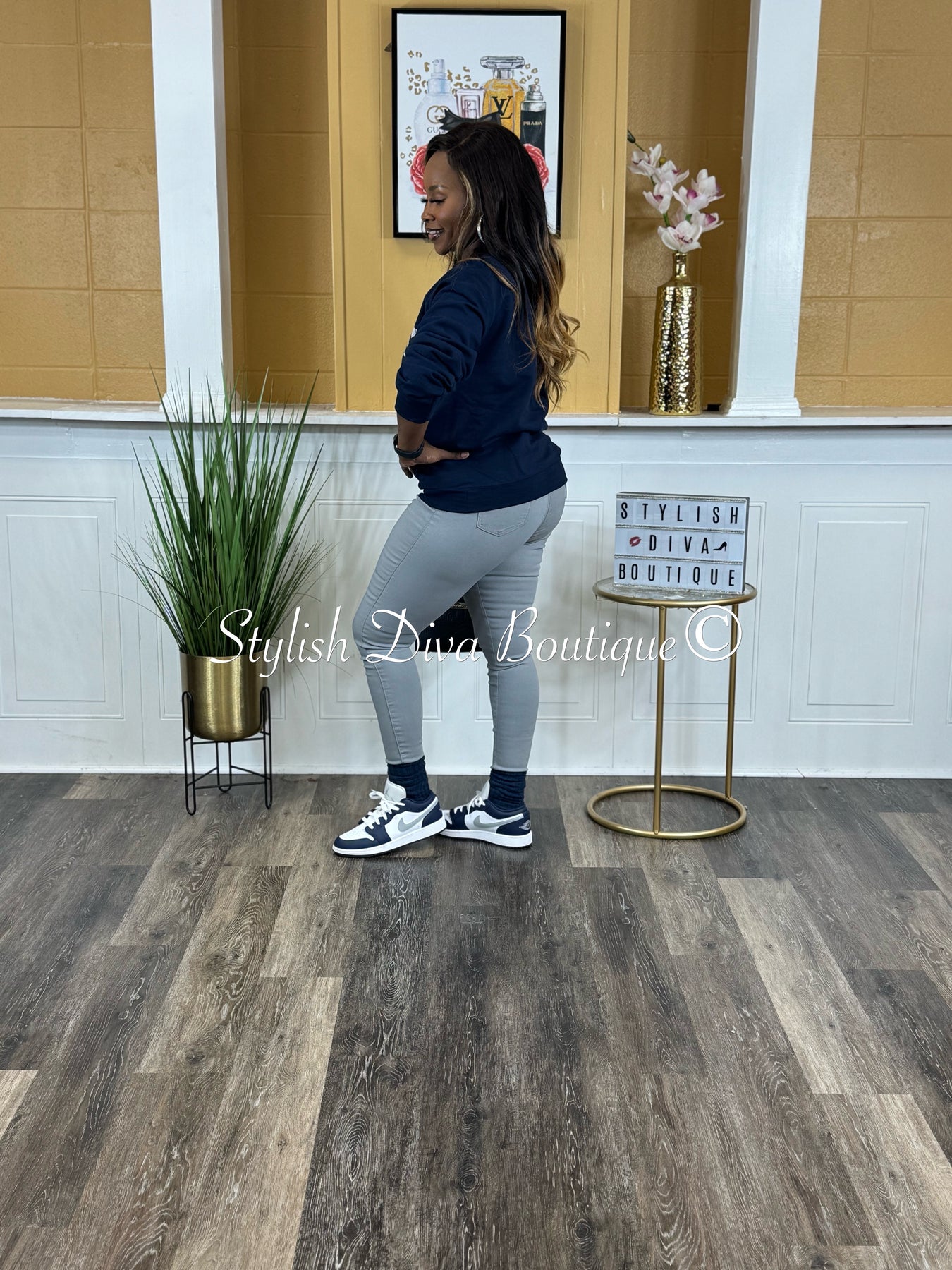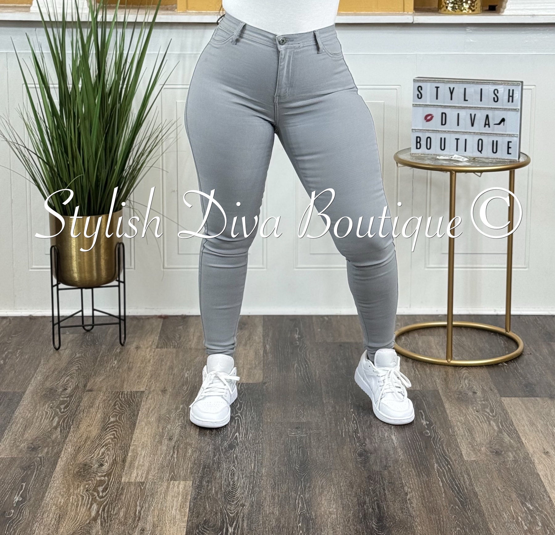 Looking for a pair of jeans that will hug your curves, enhance your figure and make you stand out in the crowd? Look no further than our So Curvy Stretch Skinny Jeans! Made with super stretch fabric, these jeans are designed to fit like a glove and move with you throughout the day. The skinny cut creates a flattering silhouette while the high waist provides added support and comfort. And let's not forget about the stunning light grey color - perfect for adding some fun and vibrancy to your wardrobe. Don't just settle for any old pair of jeans – elevate your style game with So Curvy!
