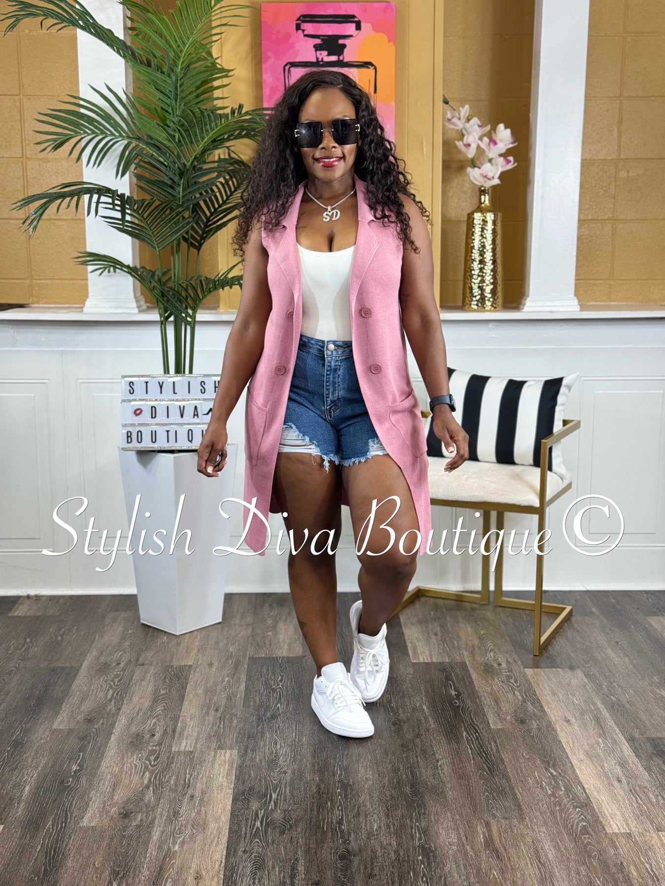 Chelsea Cardigan Vest (Pink) up to 3XL