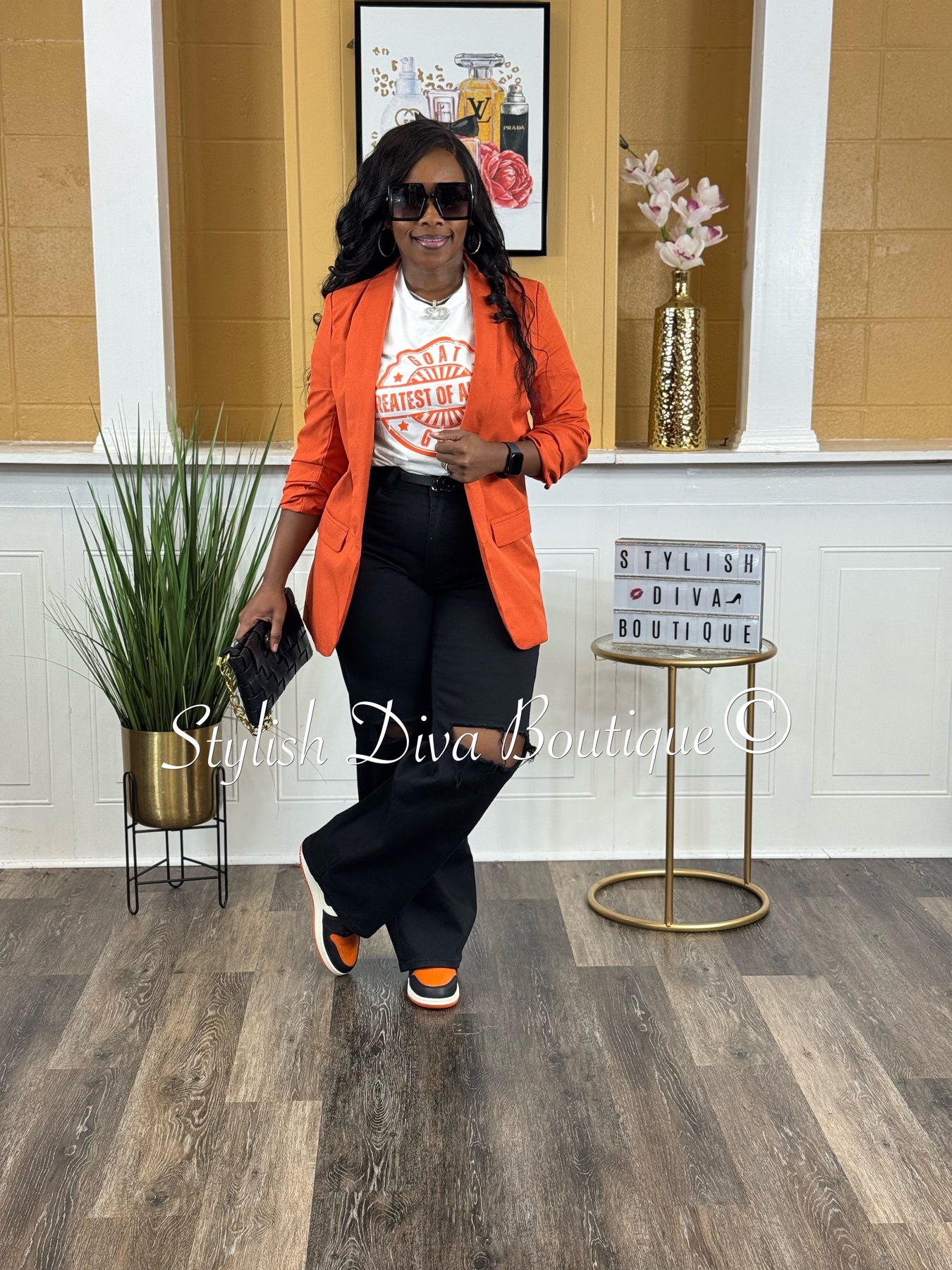 GOAT Stamped (White Shirt/Deep Orange Print)