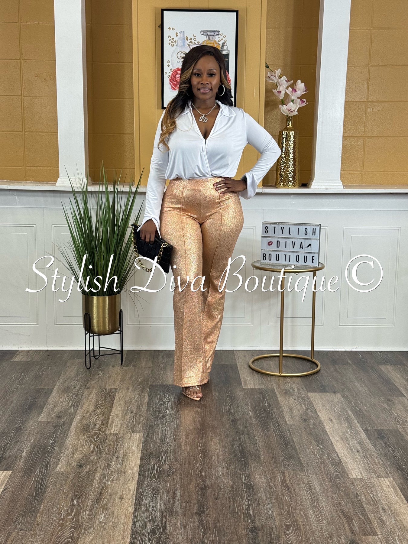 Turn heads the moment you walk in — our Golden Hour Shimmer Pants bring luxury, glow, and effortless glam to every event.