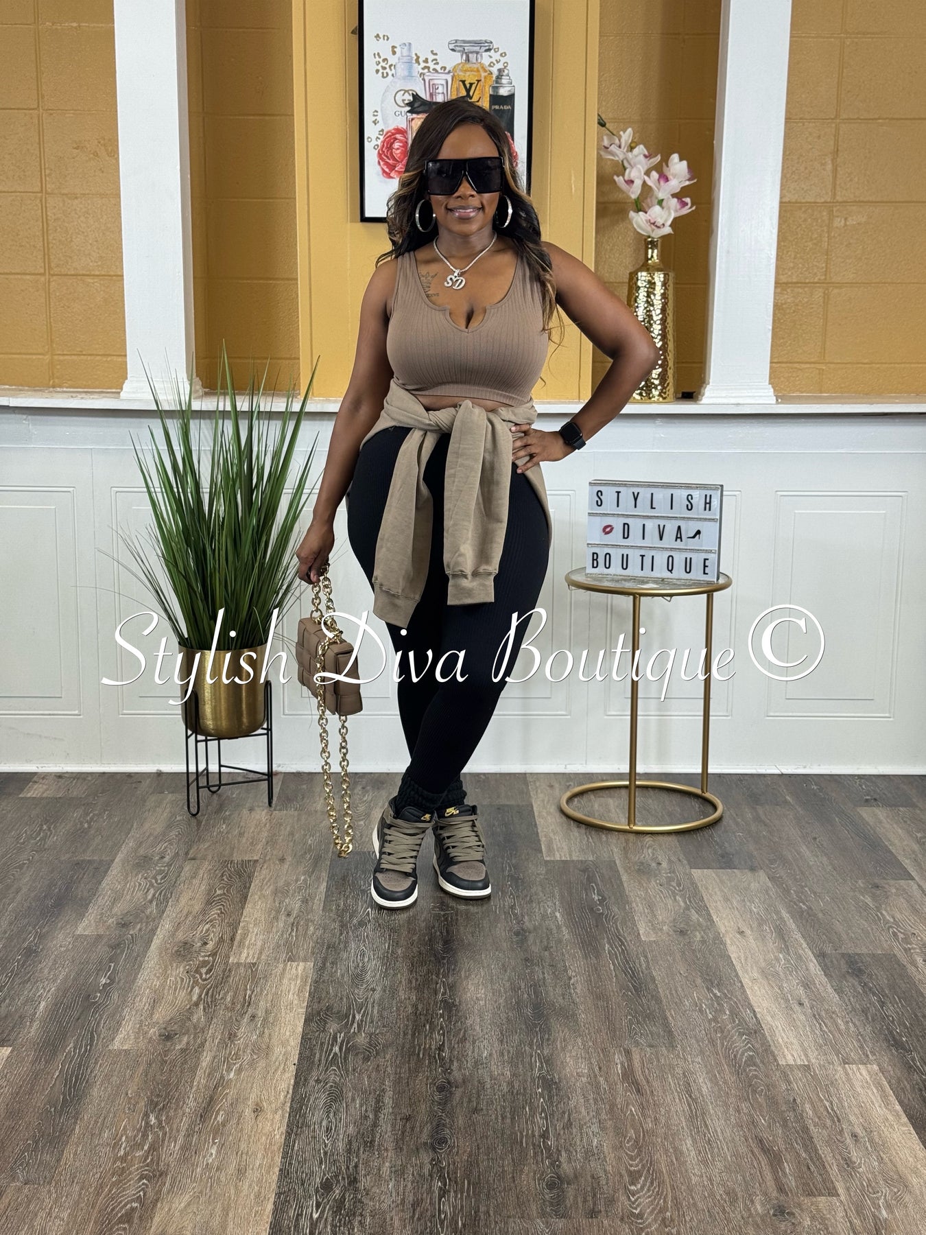RIBBED SEAMLESS SPLIT NECK CROP TOP (Mocha)