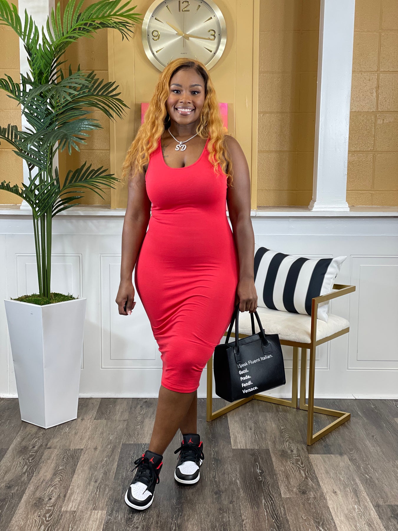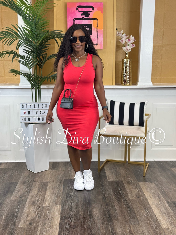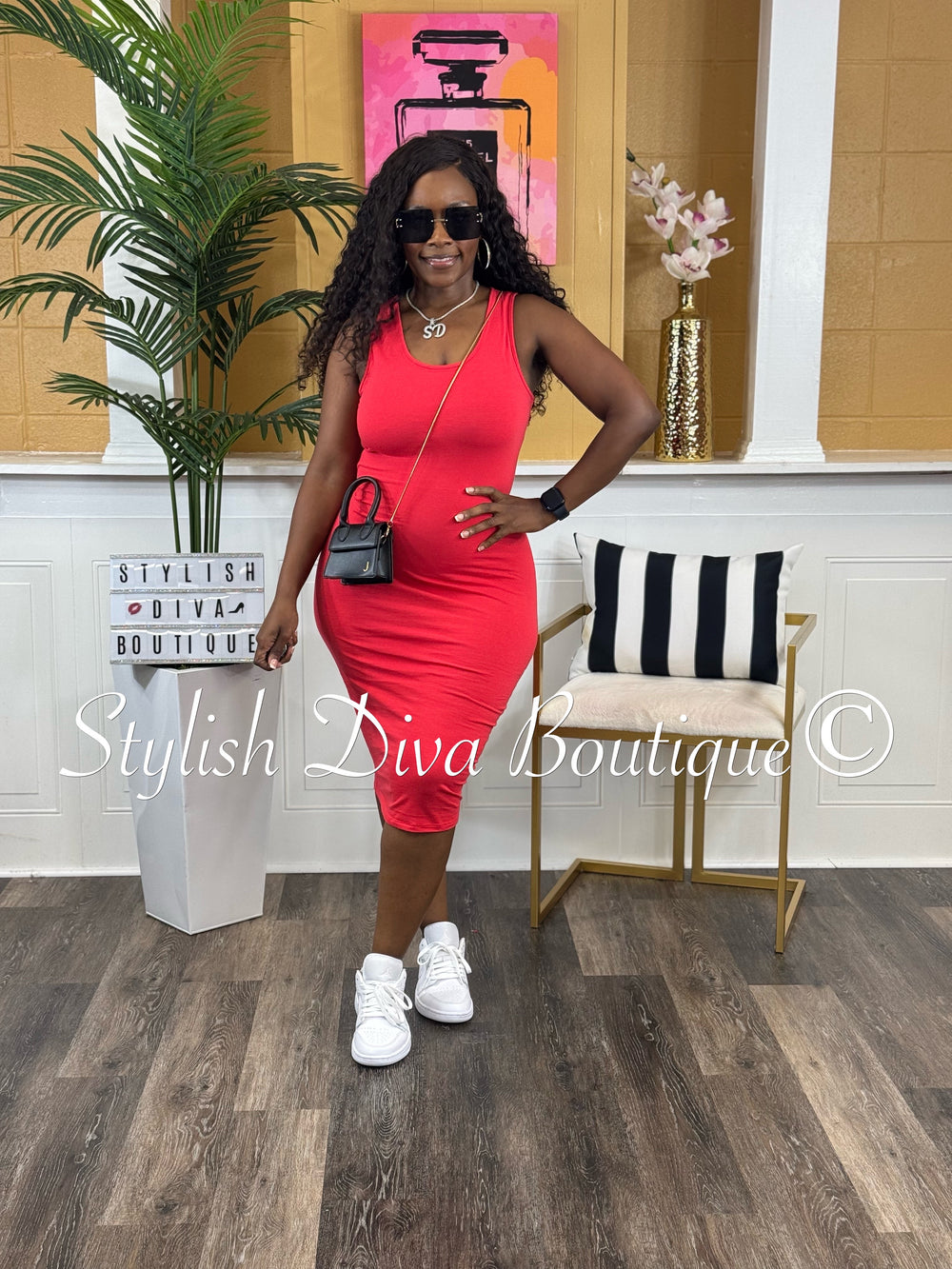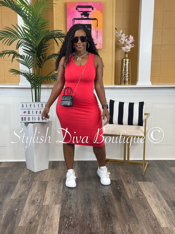 Cotton Spandex Solid Sleeveless Tank Bodycon Midi Dress