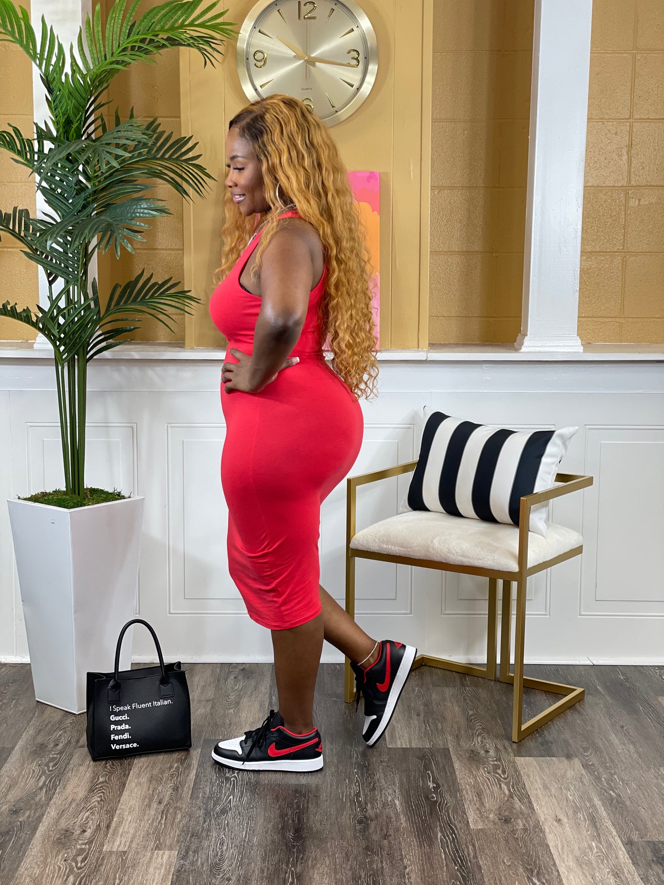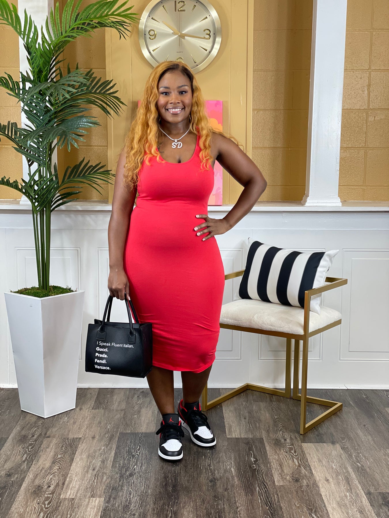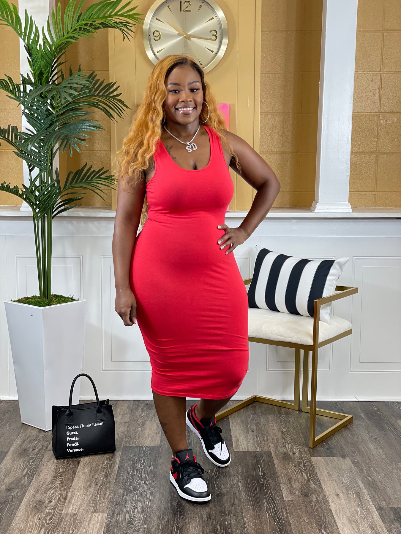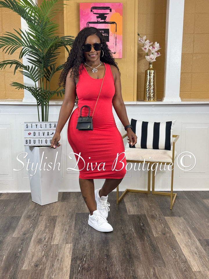 Cotton Spandex Solid Sleeveless Tank Bodycon Midi Dress