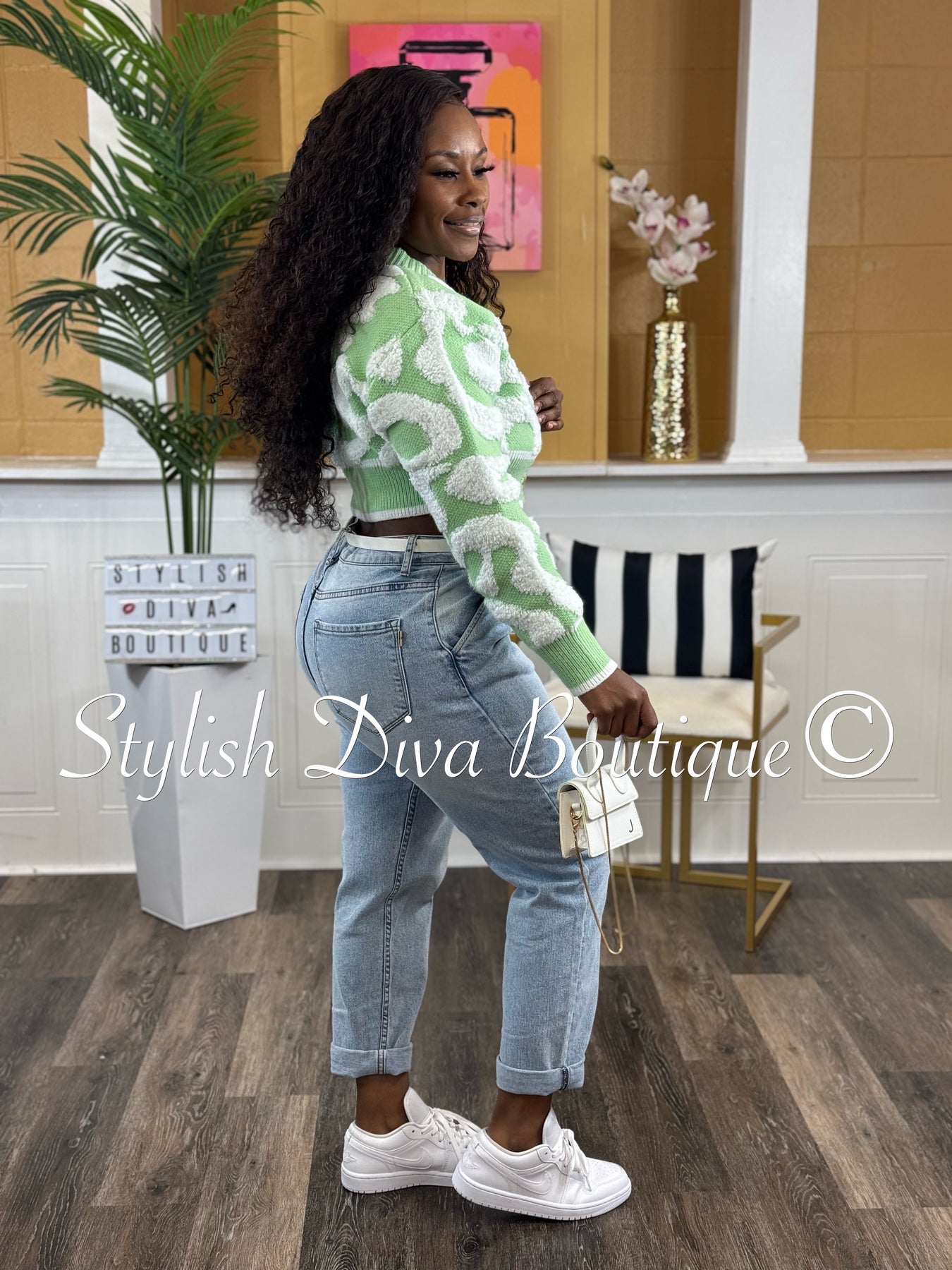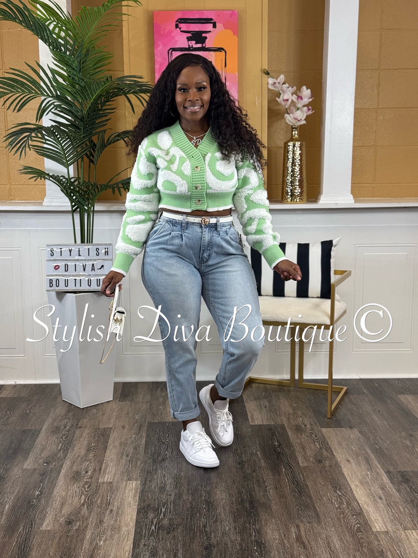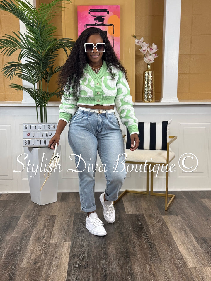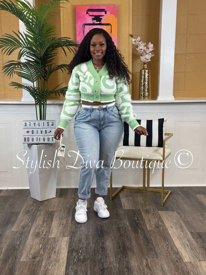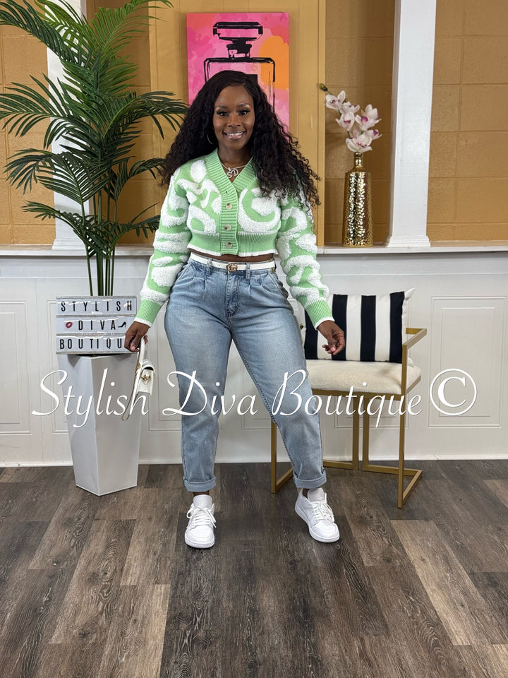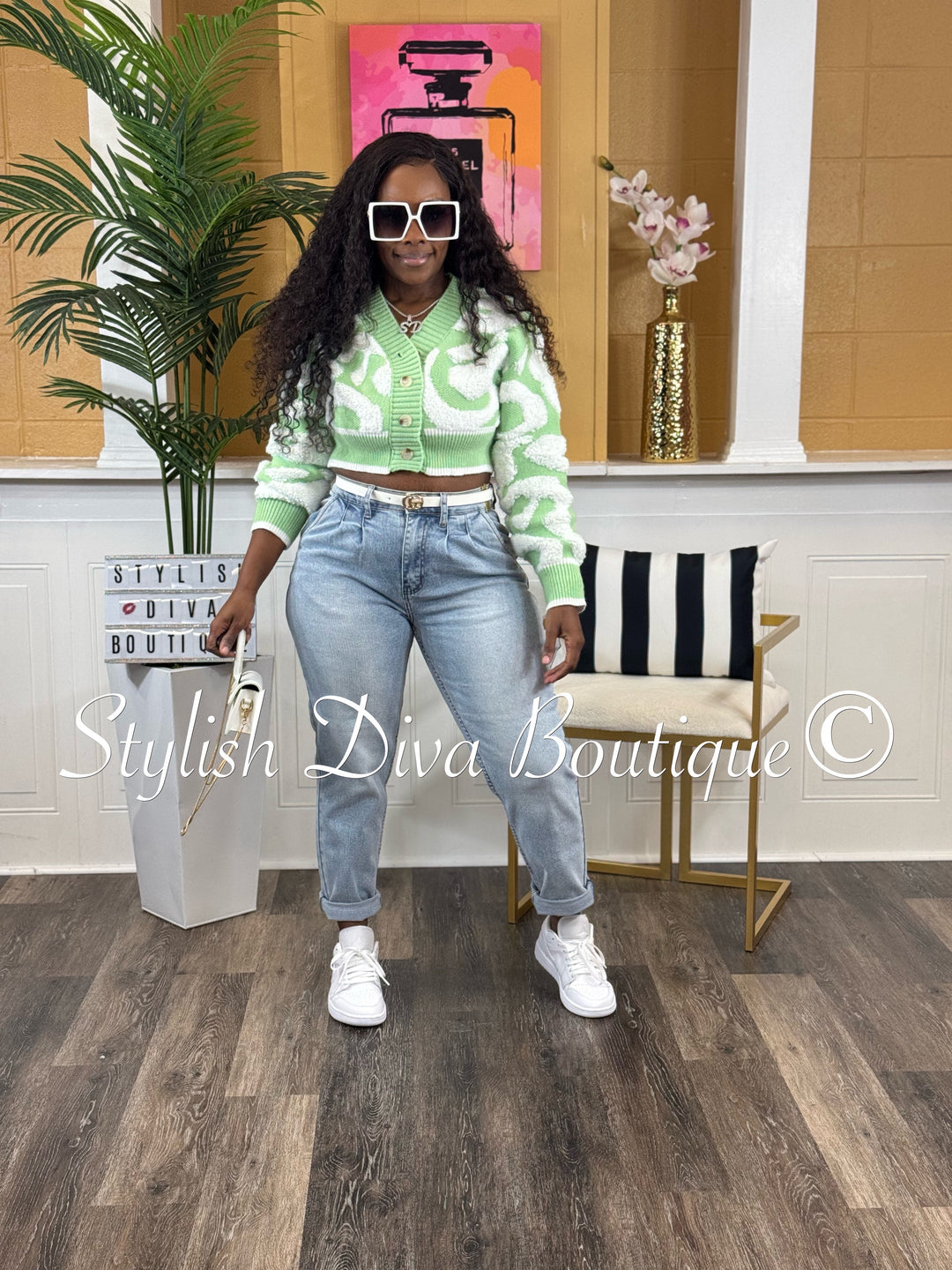 Isabelle Duo Color Cropped Knitted Cardigan (Light Green/White)
