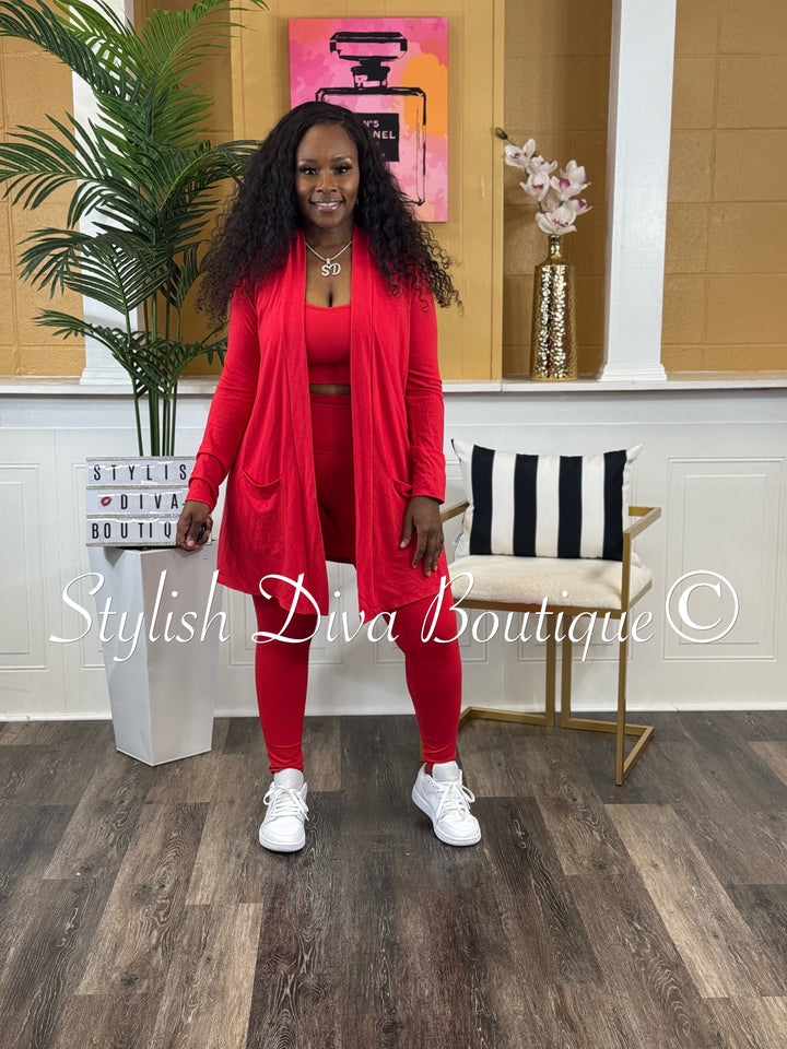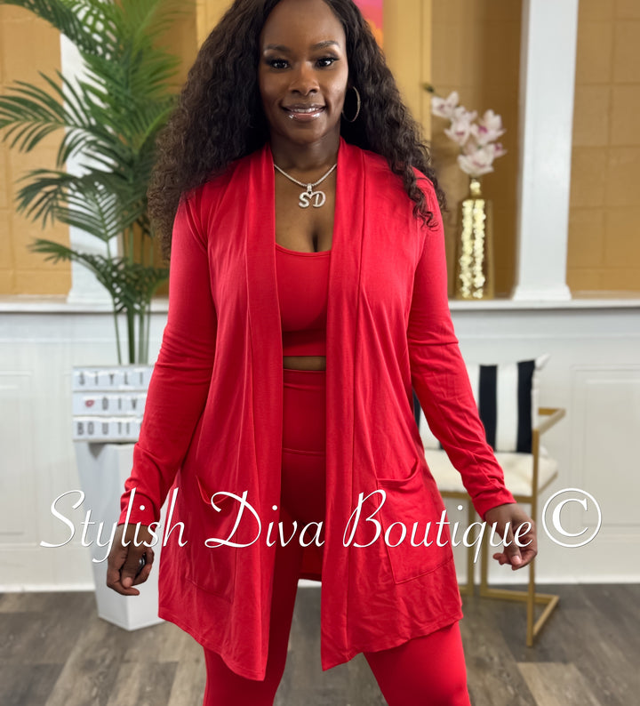 Everyday Open Front Cardigan (Red)