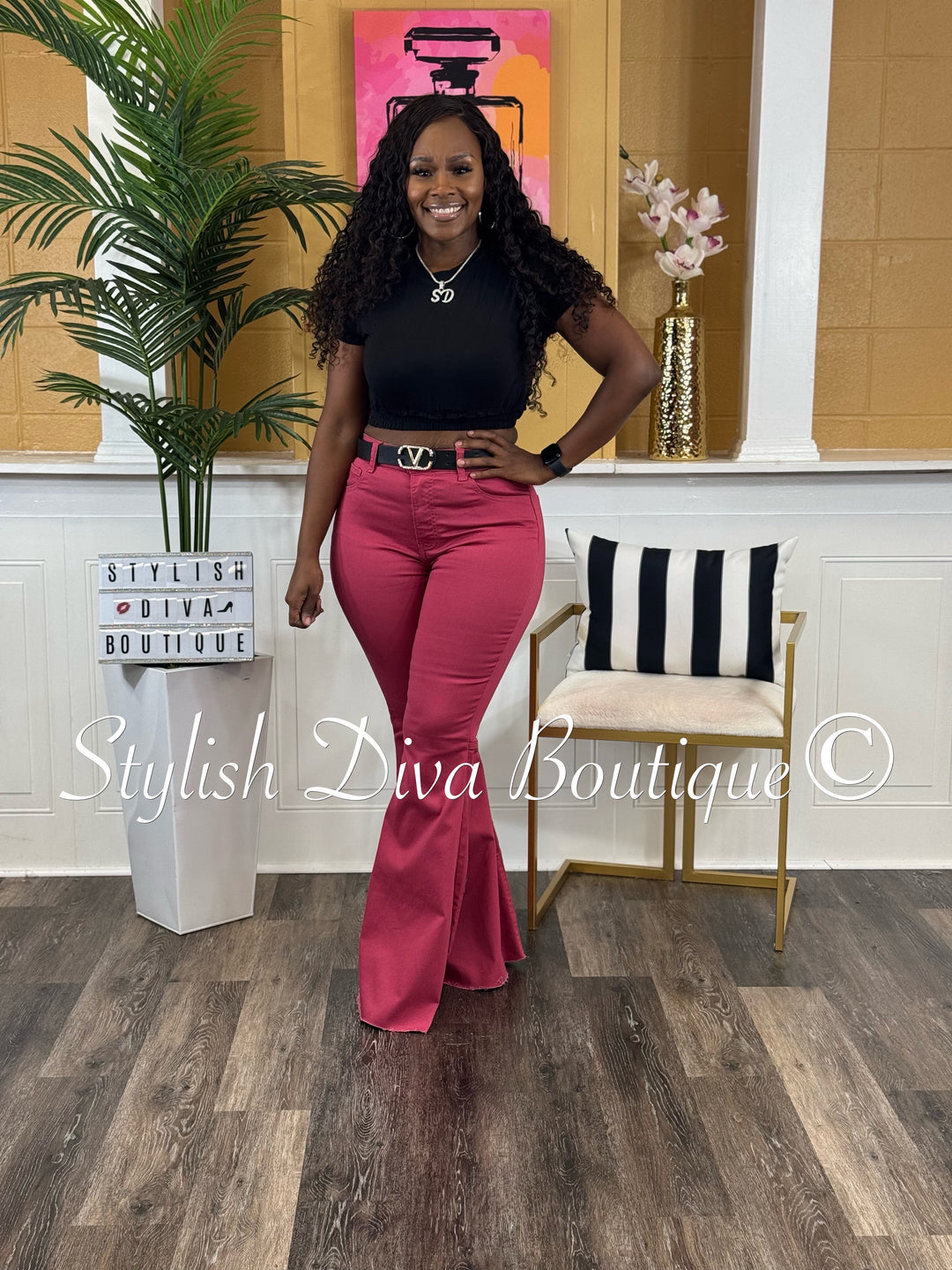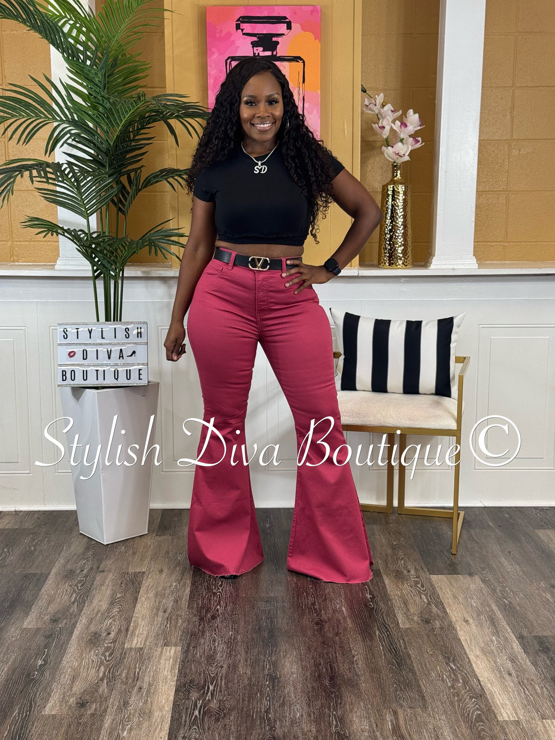 Jordyn High Waist Colored Flare Pants (Rose Pink)