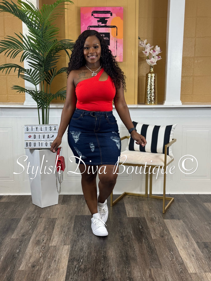 Maddy One Shoulder Bodysuit (Red)