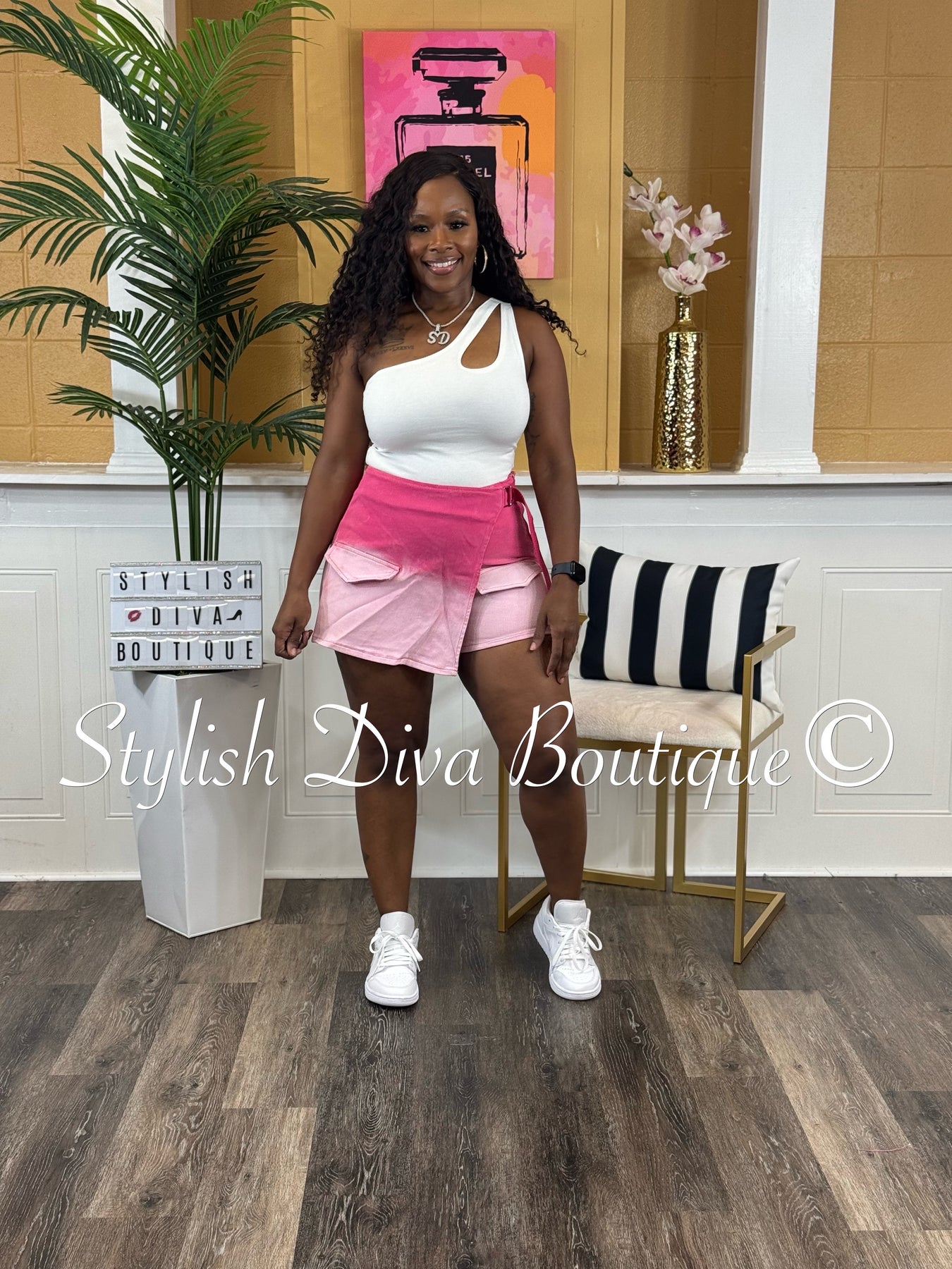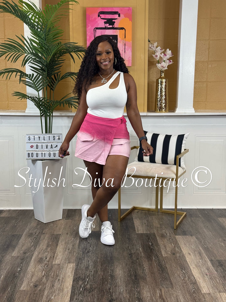 This Megan Ombre Washed Mini Skort combines style and comfort with its soft cotton-spandex blend. Featuring a flattering belted waist and a convenient side zipper closure, it offers a perfect fit. The trendy ombre wash adds a unique touch, while the mini length and 3-inch inseam keep your look fresh and flirty. Ideal for warm days or casual outings, this skort effortlessly blends fashion and function.