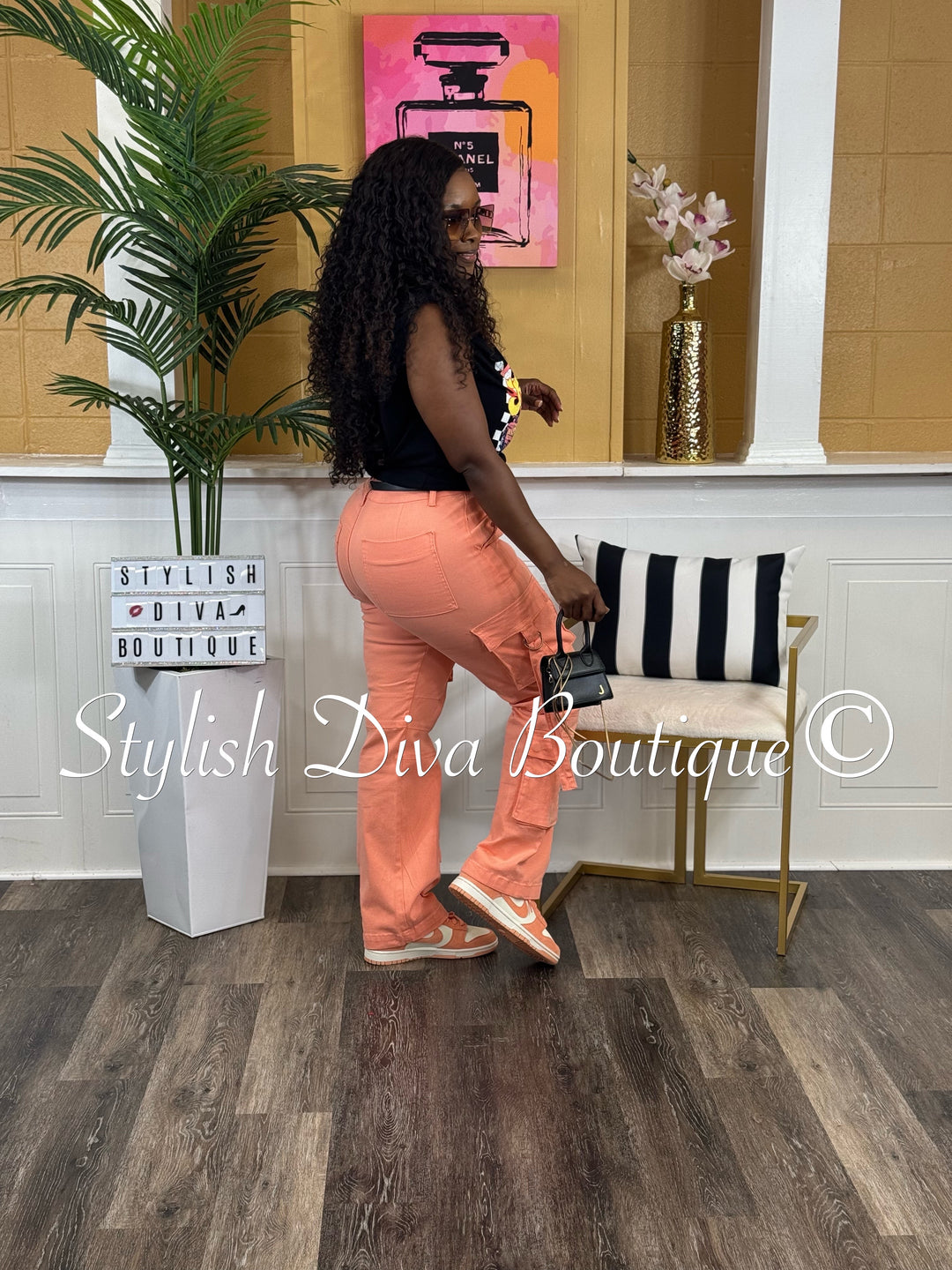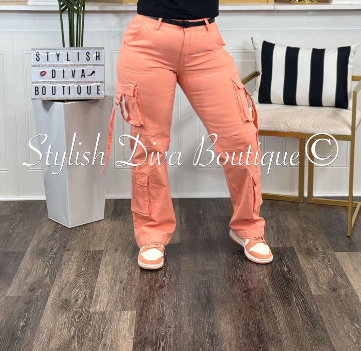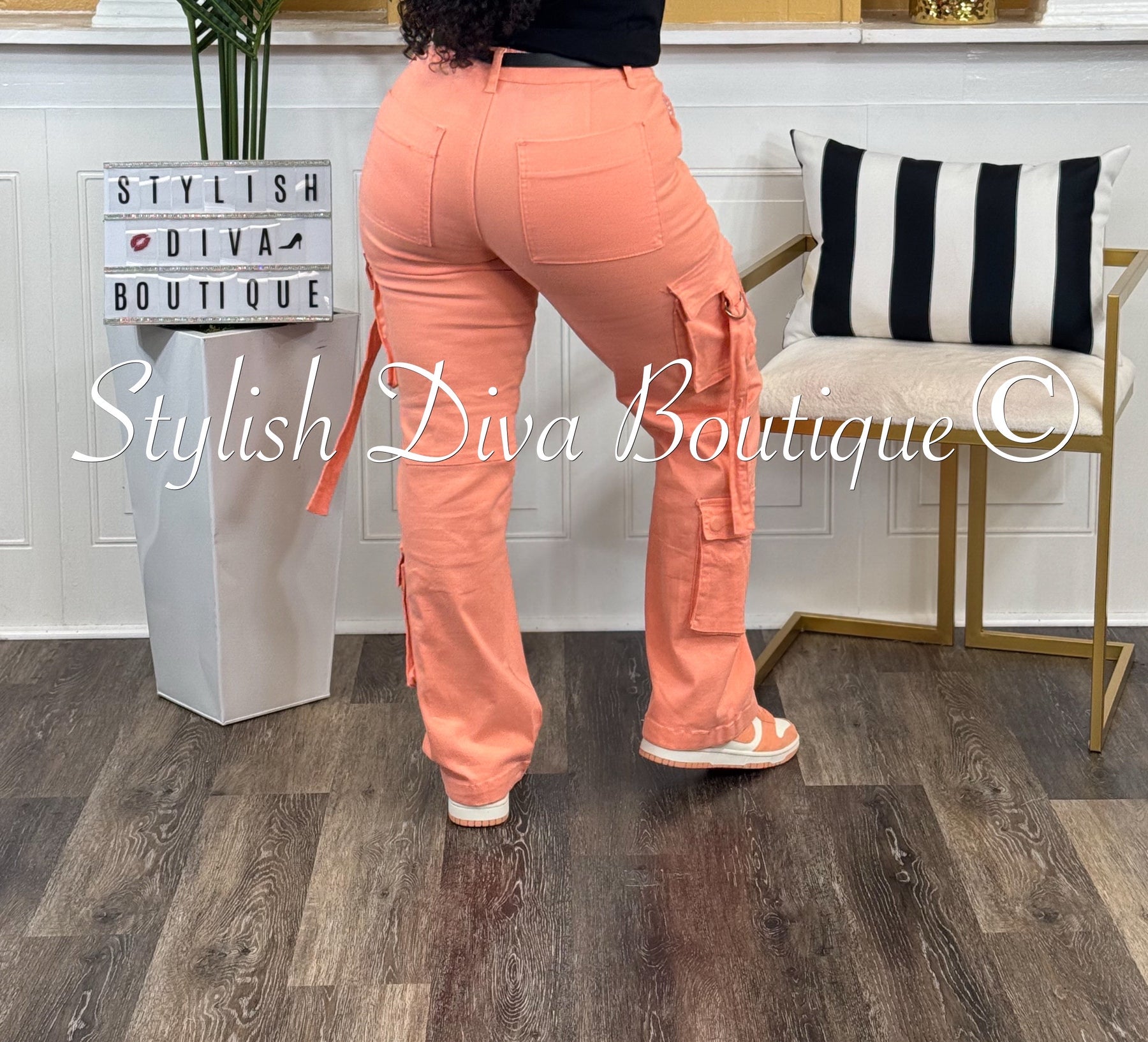 Elevate your casual wardrobe with our Milye Cargo Pants in a stunning peach hue. These high-rise, straight-leg pants combine style with functionality, featuring multiple pockets for all your essentials. The relaxed fit ensures all-day comfort while maintaining a flattering silhouette. Perfect for creating effortlessly chic looks that transition seamlessly from errands to evening outings.