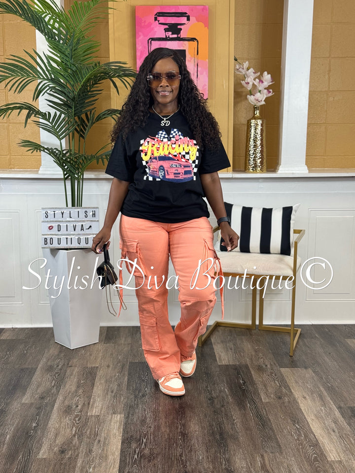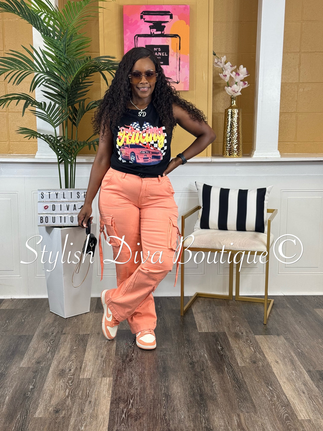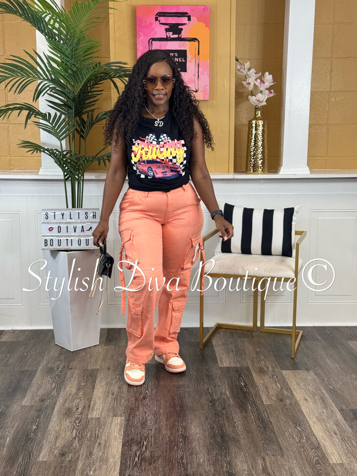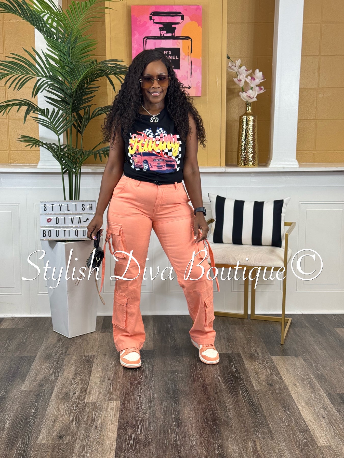 Elevate your casual wardrobe with our Milye Cargo Pants in a stunning peach hue. These high-rise, straight-leg pants combine style with functionality, featuring multiple pockets for all your essentials. The relaxed fit ensures all-day comfort while maintaining a flattering silhouette. Perfect for creating effortlessly chic looks that transition seamlessly from errands to evening outings.