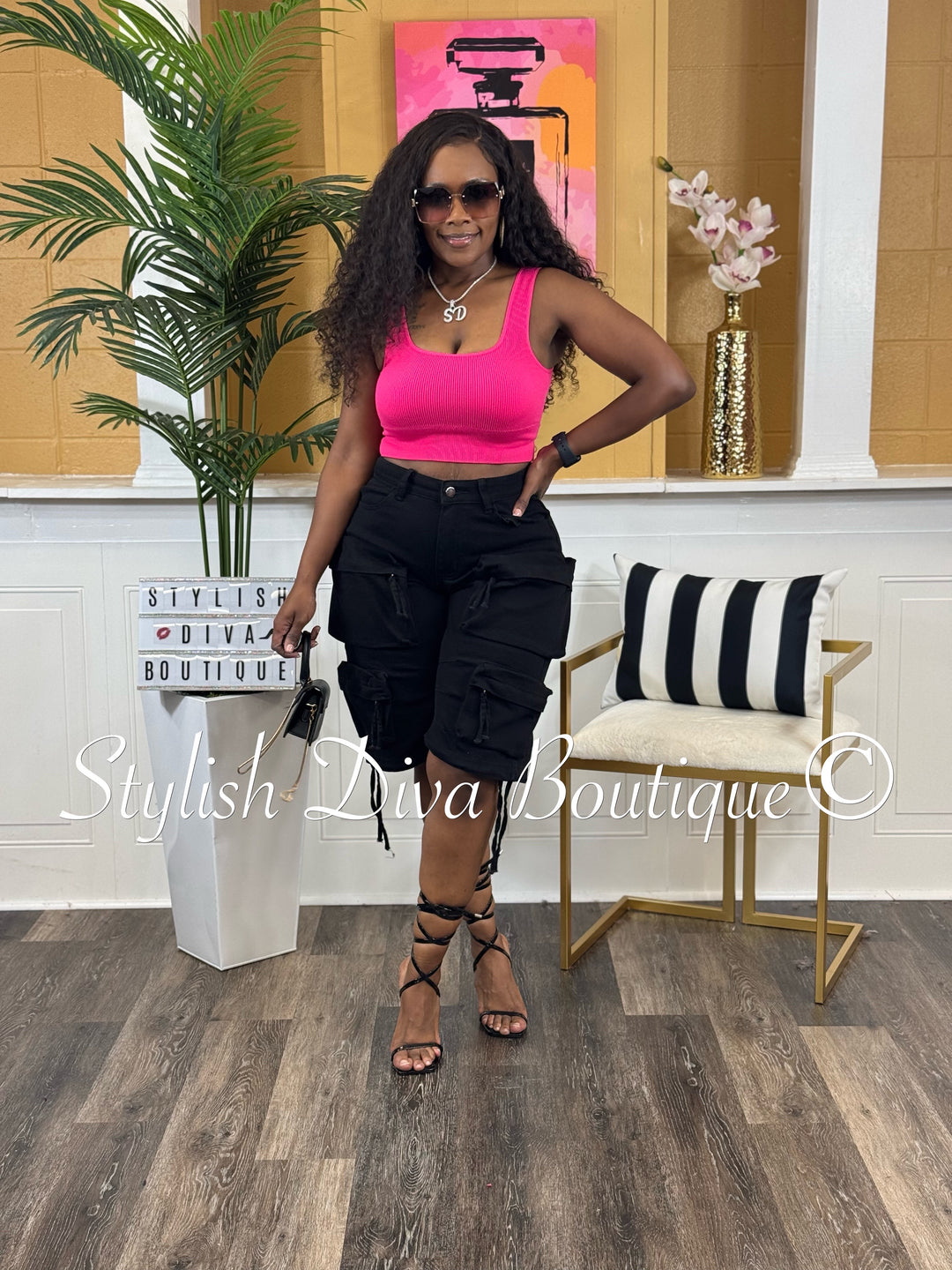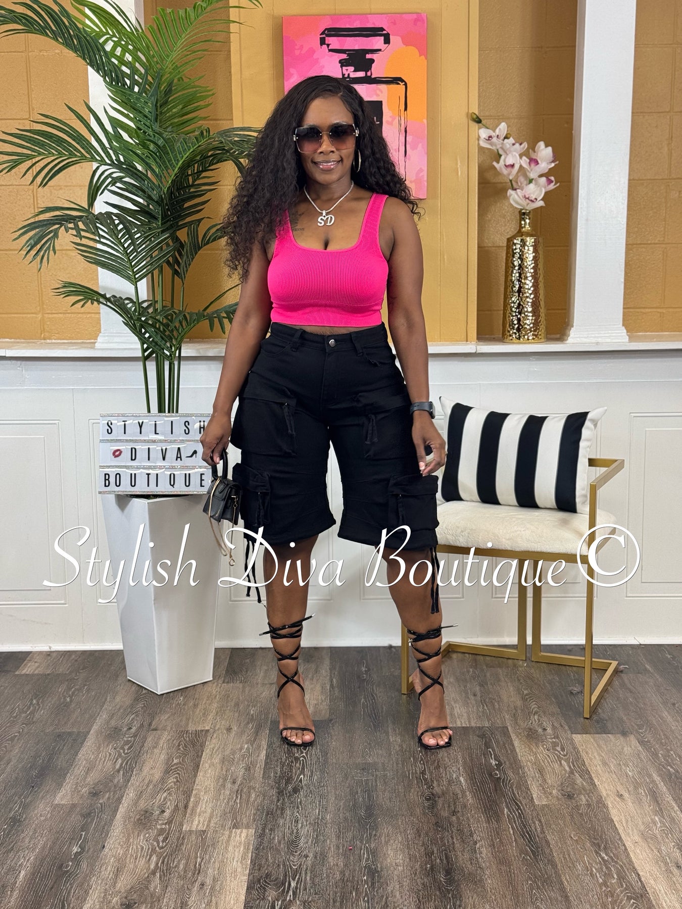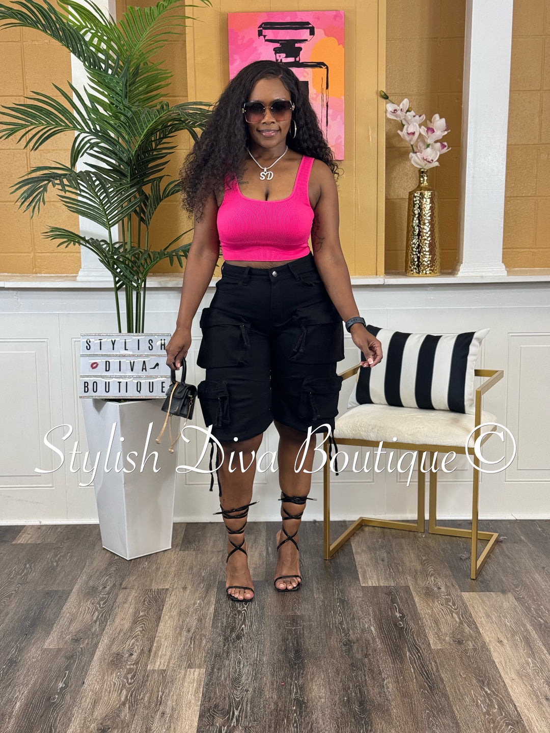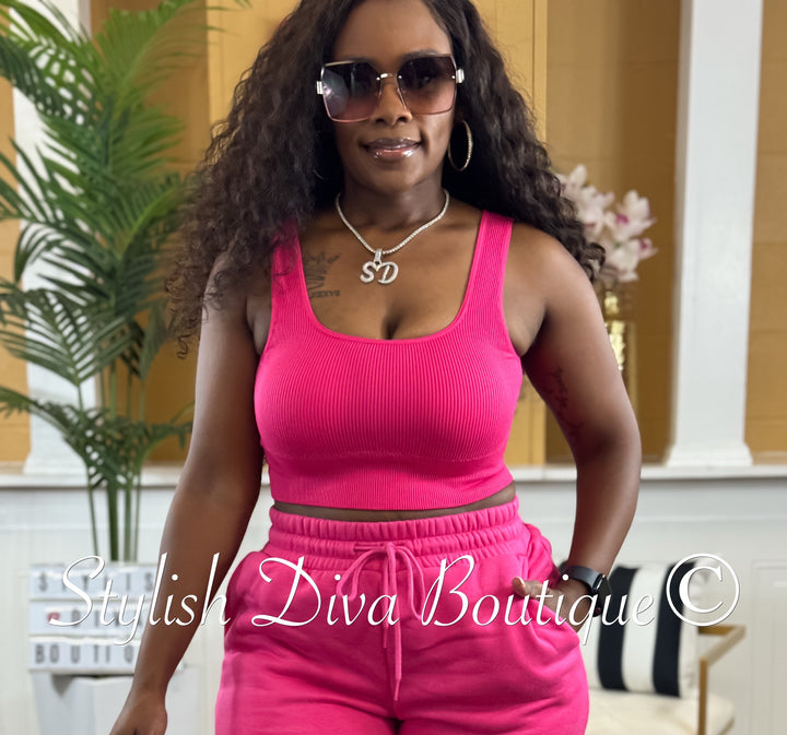 Ribbed Seamless Square Neck Cropped Tank (Hot Pink)