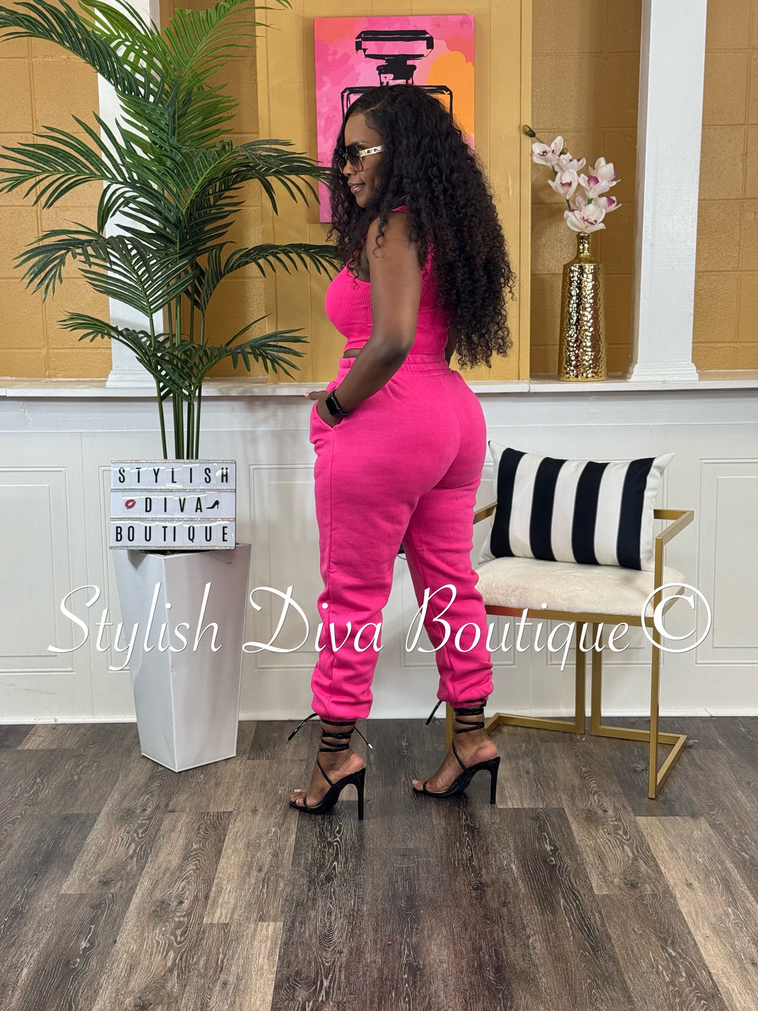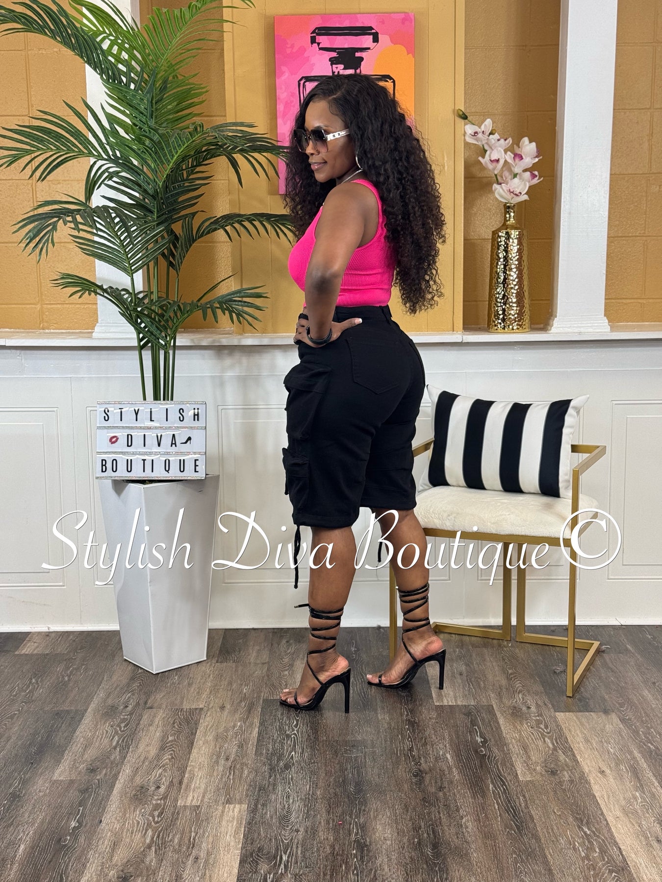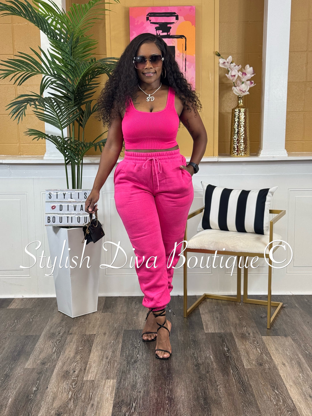 Ribbed Seamless Square Neck Cropped Tank (Hot Pink)