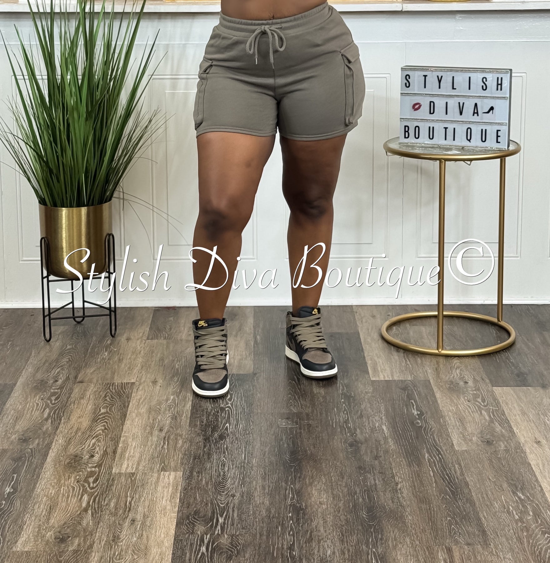 Sammie Fleece Cargo Shorts (Taupe Brown)