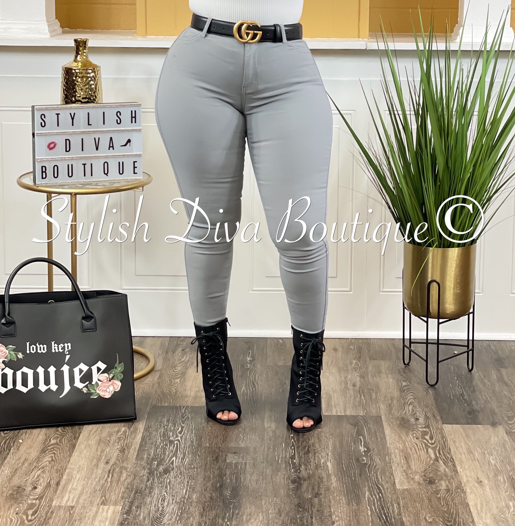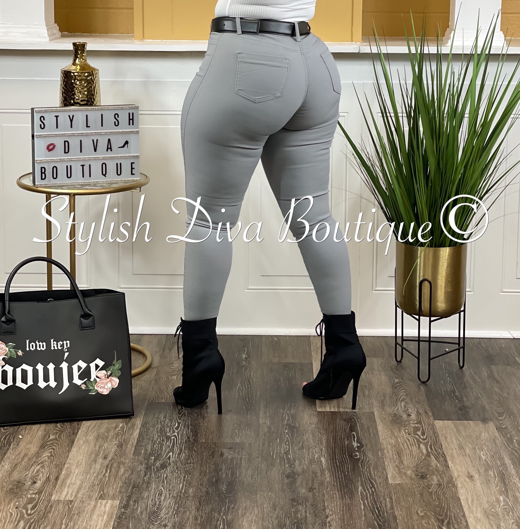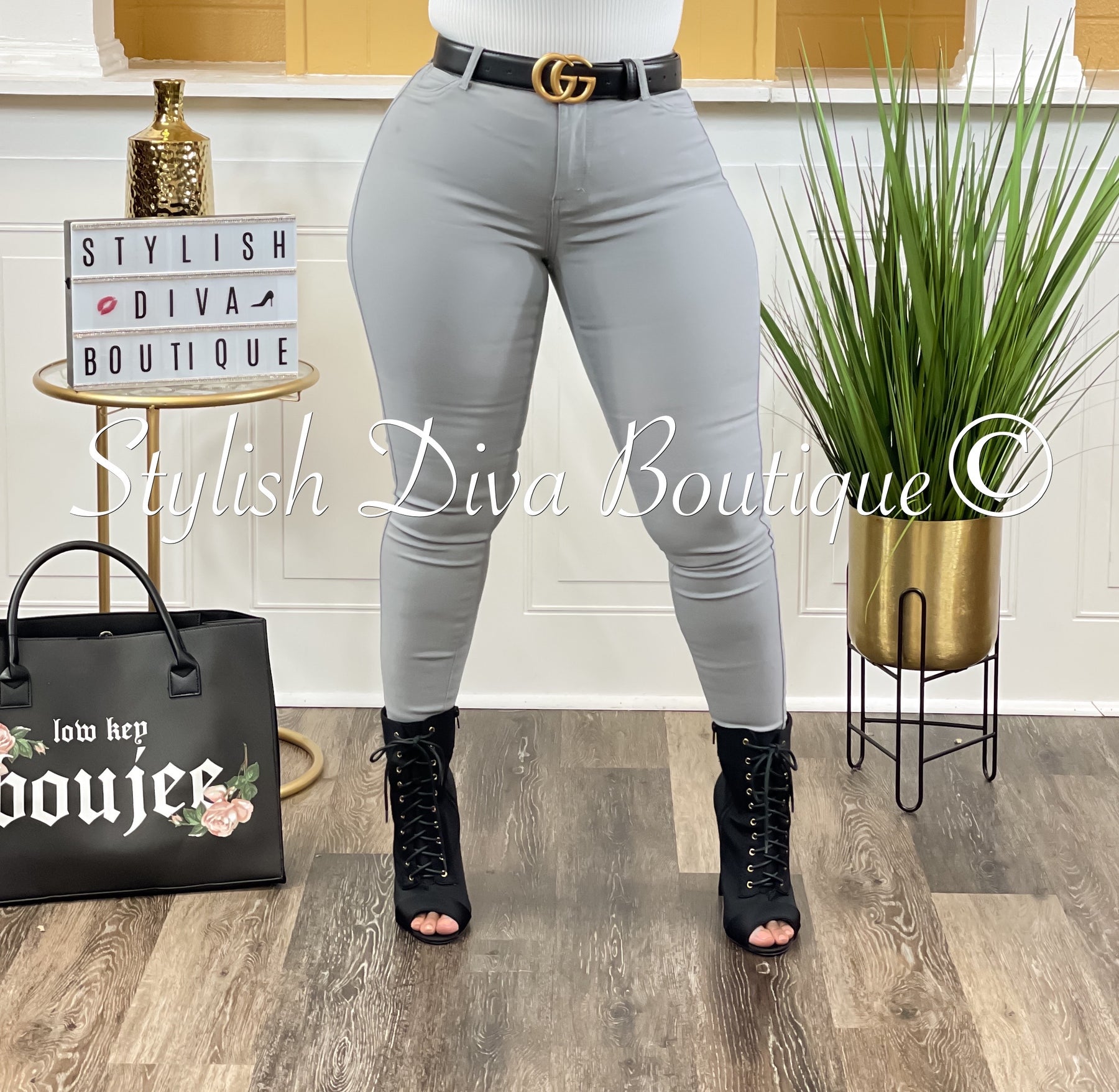 Looking for a pair of jeans that will hug your curves, enhance your figure and make you stand out in the crowd? Look no further than our So Curvy Stretch Skinny Jeans! Made with super stretch fabric, these jeans are designed to fit like a glove and move with you throughout the day. The skinny cut creates a flattering silhouette while the high waist provides added support and comfort. And let's not forget about the stunning light grey color - perfect for adding some fun and vibrancy to your wardrobe. Don't just settle for any old pair of jeans – elevate your style game with So Curvy!