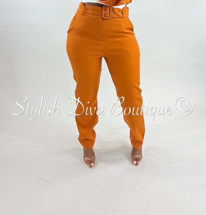 Experience the sleek, modern style of our You Better Work Cropped Pants (Camel Brown)! Cover your waist with a stylish, removable belt and secure it with a solid buckle. A front zipper ensures a perfect fit, while the 97% Polyester/3% Spandex blend provides a perfect combination of comfort and durability.